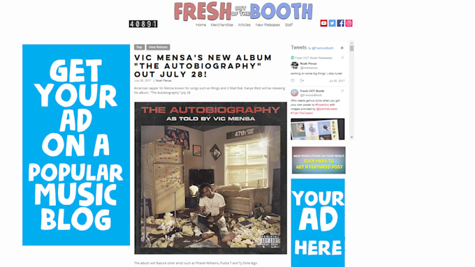 Need Your Product Advertised On A Popular Website?Fresh Out Of The Booth is a popular music blog that has a lot of audience interaction and are looking for people to have their products advertised on our site.